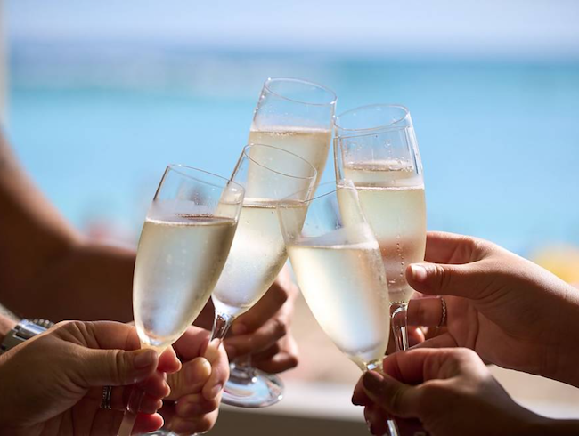 Cabana Suite - Enjoy an oceanfront celebration on our beautifully decorated pool deck with access from 8:30 PM to midnight. Includes two premium pupu platters, two bottles of Devant Brut Champagne (NV and Rosé), DJ entertainment, and complimentary parking for up to six guests.